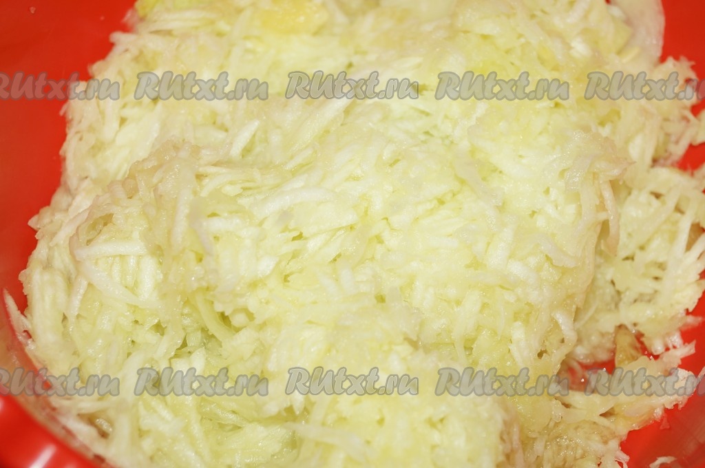 Кабачки натереть на крупной тёрке и отжать руками лишнюю жидкость.