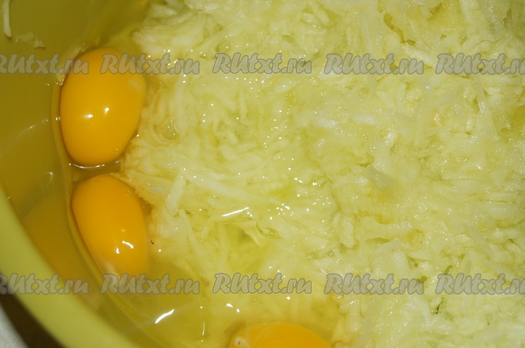 Добавить к натёртым кабачкам яйца.