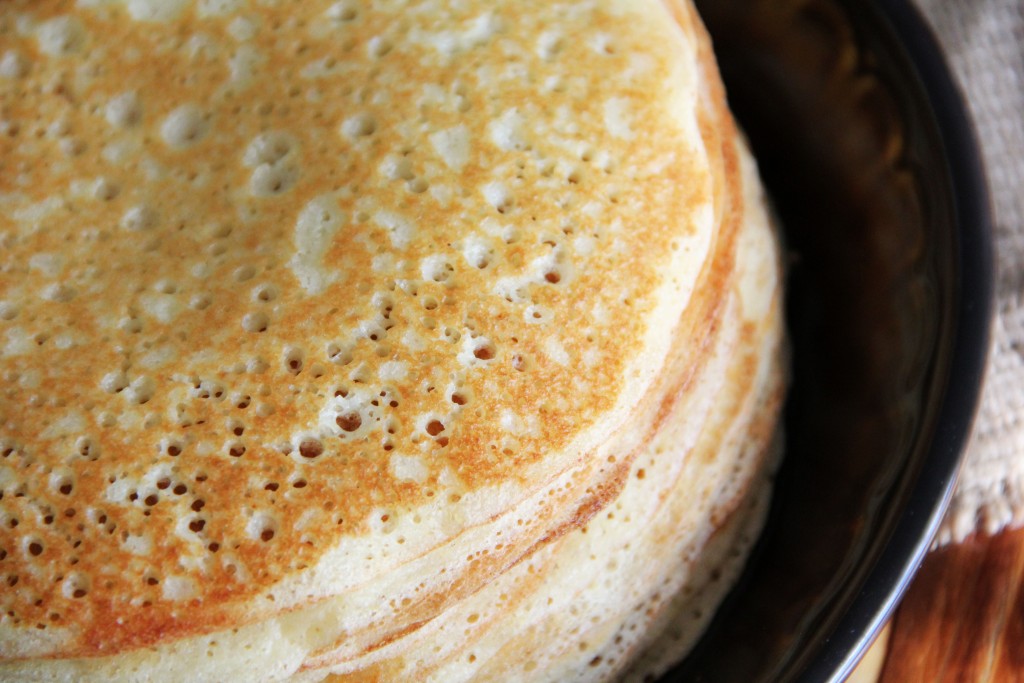 Жарить блин с двух сторон до золотистого цвета на среднем огне, затем переложить на тарелку. Постепенно пожарить все нежные блинчики. Тесто в процессе жарки блинов перемешивать не нужно. Вот такие дырчатые и очень вкусные блины из пшённой каши на дрожжах получаются. Кстати, члены моей семьи даже не догадались, что эти дрожжевые блины сделаны с добавлением каши.