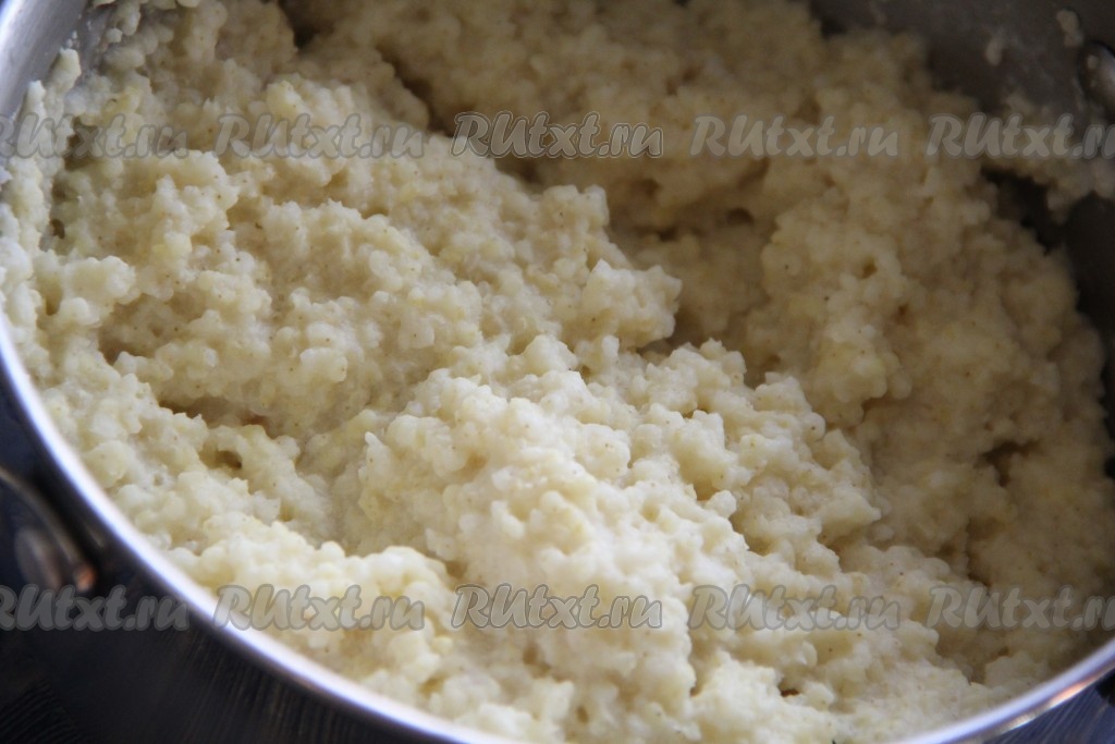 Готовую пшённую кашу снять с огня и дать немного остыть.