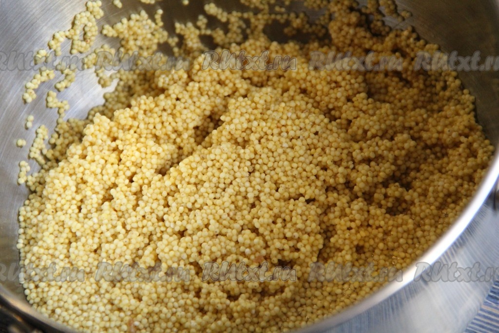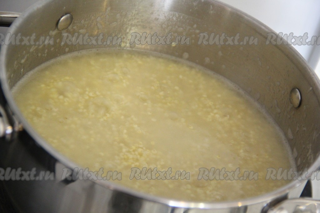 Пшённую крупу хорошо промыть водой, дать лишней воде стечь.