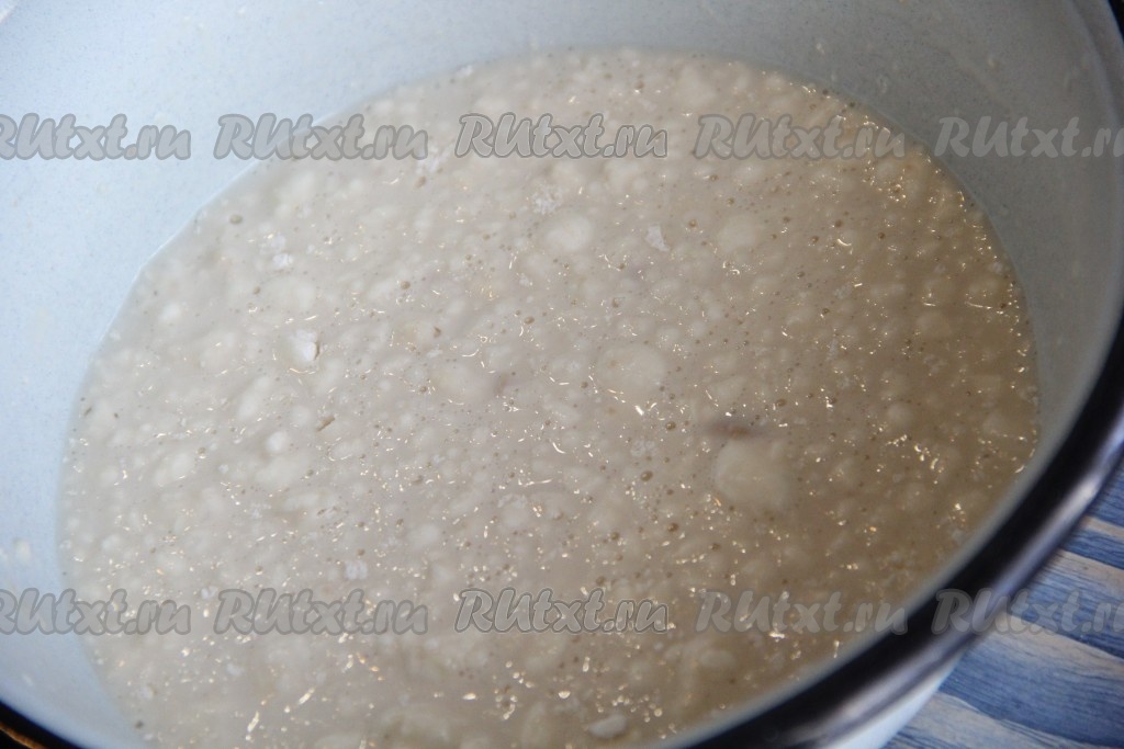 По прошествии 30 минут опара увеличится в объёме, на поверхности появятся пузырьки.