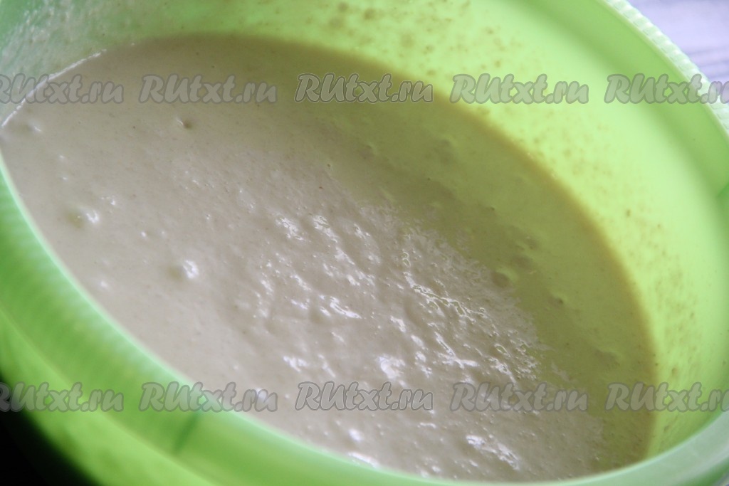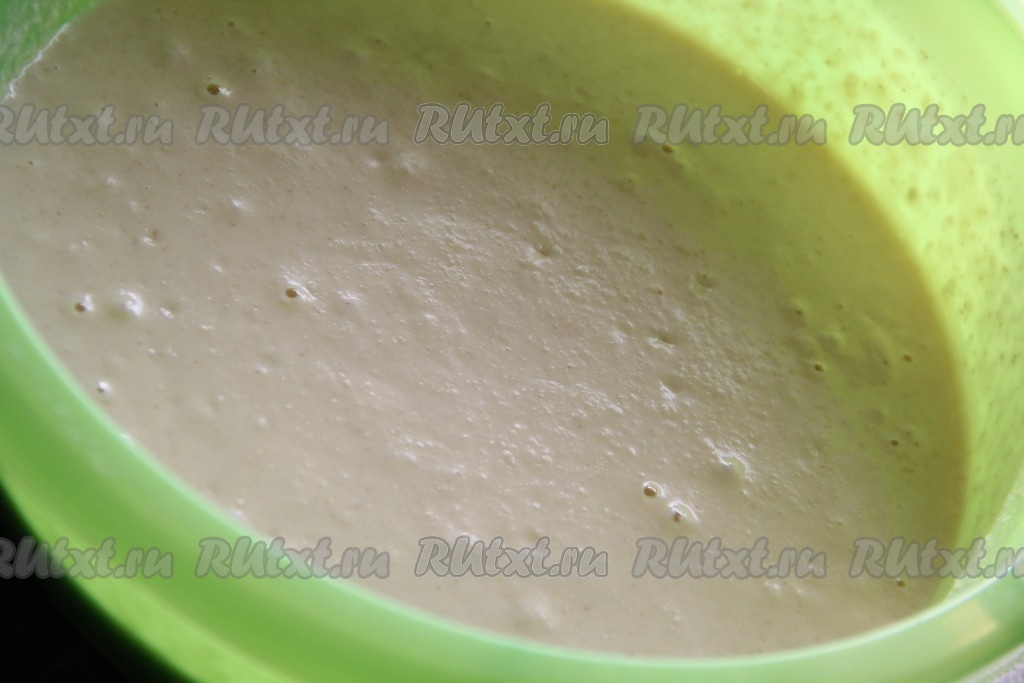 Тесто слегка поднимется и запузырится. Добавить в тесто растительное масло и хорошо перемешать.