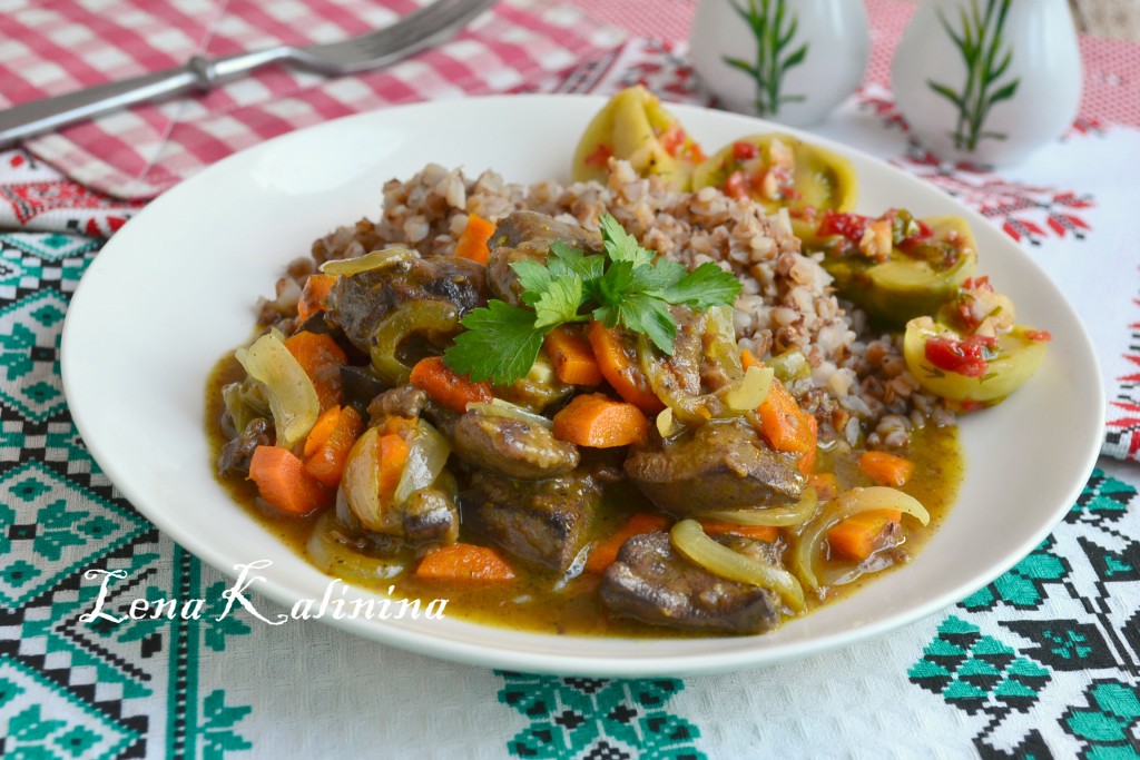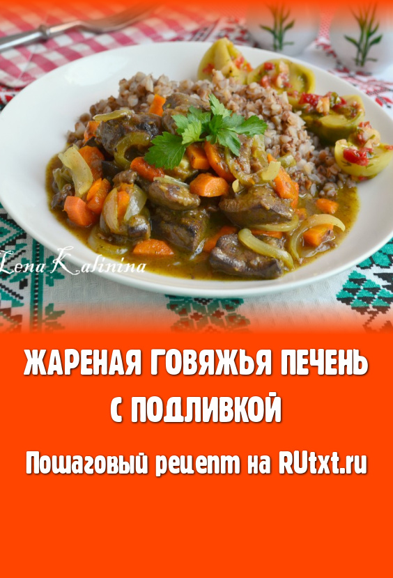 Очень вкусная жареная говяжья печень с подливкой готова! Подайте ее с кашей, картофелем или макаронами.