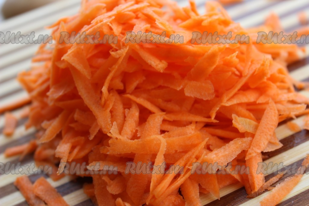 Морковь почистить, вымыть и натереть на крупной тёрке.