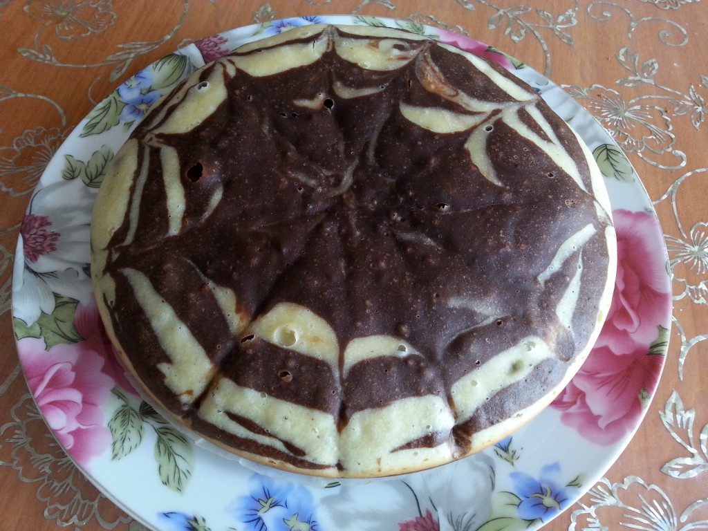 Выпекать пирог "Зебра" в разогретой до 180 градусов духовке 40-50 минут (готовность проверить зубочисткой, если она сухая, значит пирог готов). Я выпекала в мультиварке 60 минут на режиме "Выпечка". Готовый очень вкусный, нежный пирог "Зебра", замешанный на сметане, остудить на решетке. По желанию можно посыпать сахарной пудрой или покрыть шоколадной глазурью, посыпать миндальными лепестками или орешками.