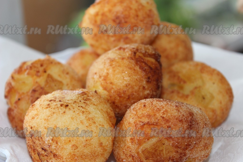 При подаче по желанию посыпать сахарной пудрой. Вот такие аппетитные творожные шарики, жареные в масле по этому рецепту, у меня получились.
