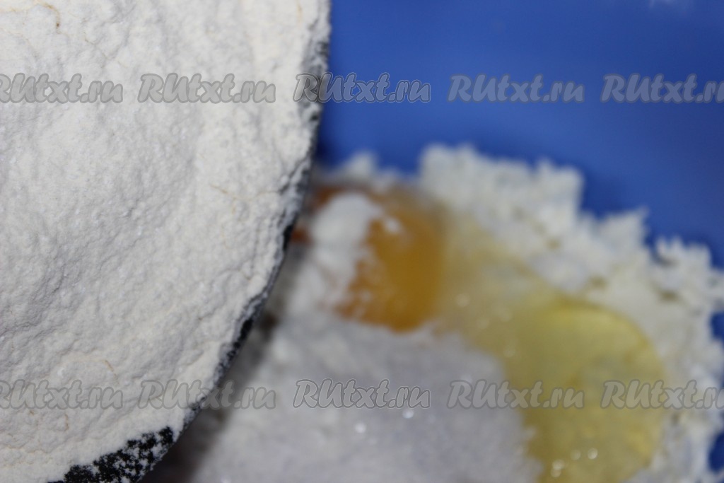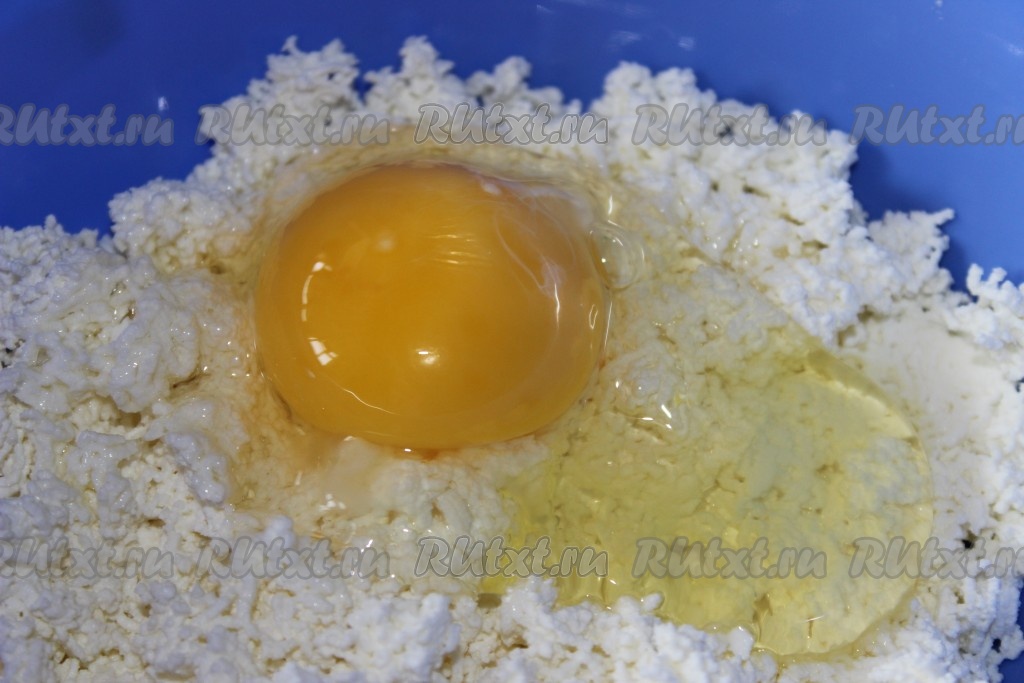 Муку просеять с разрыхлителем и добавить к получившейся творожной массе.