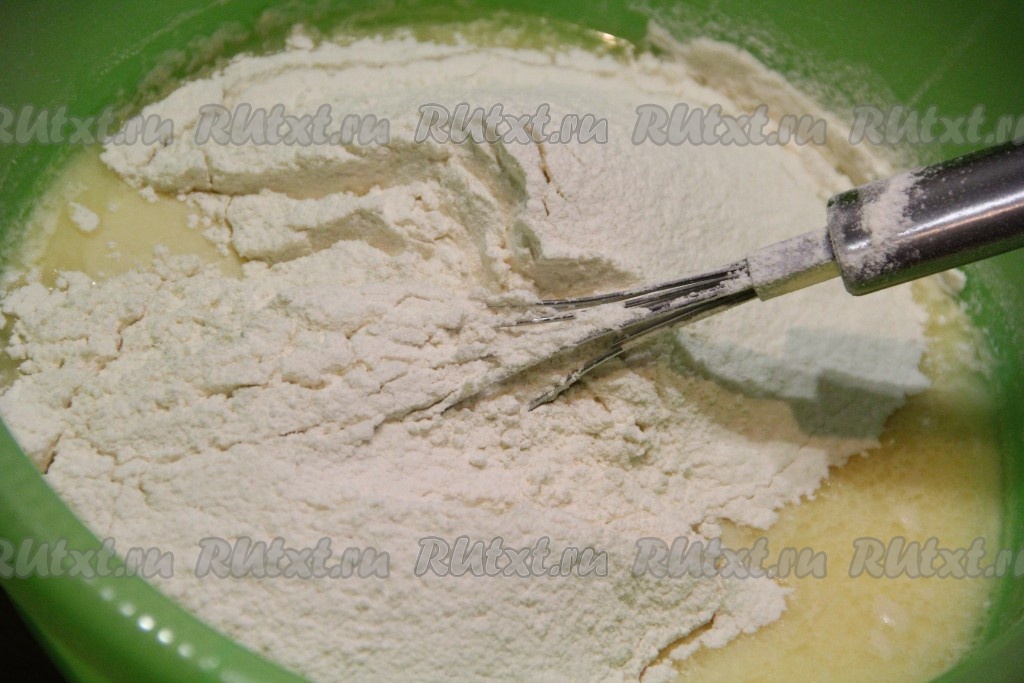 В получившуюся массу всыпать просеянную муку.