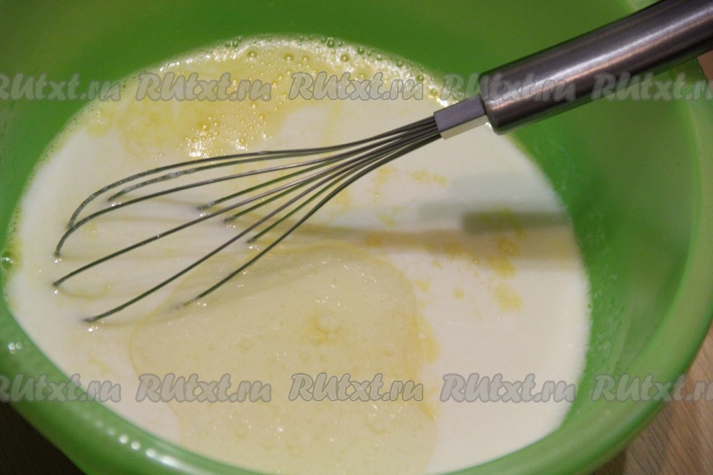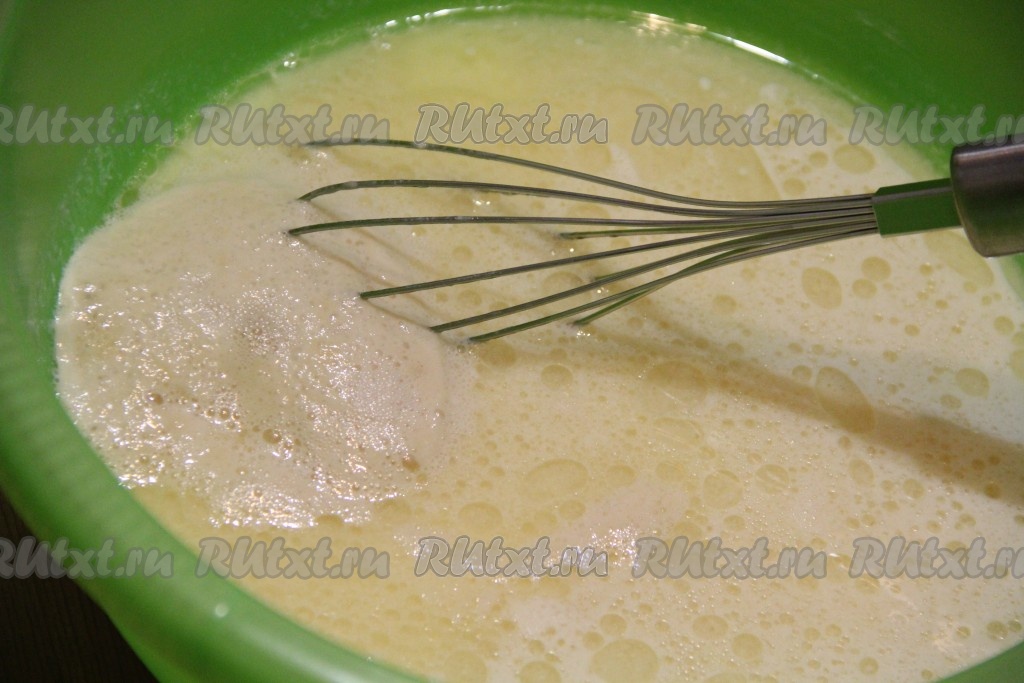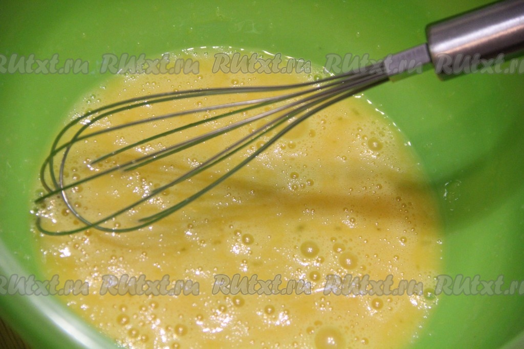 Слегка взбить яичную смесь венчиком (до воздушного состояния).