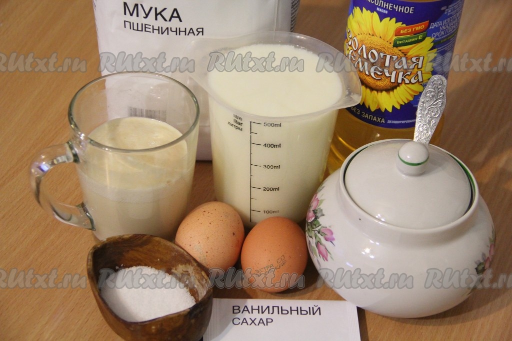 Подготовить продукты для замешивания теста для оладий.