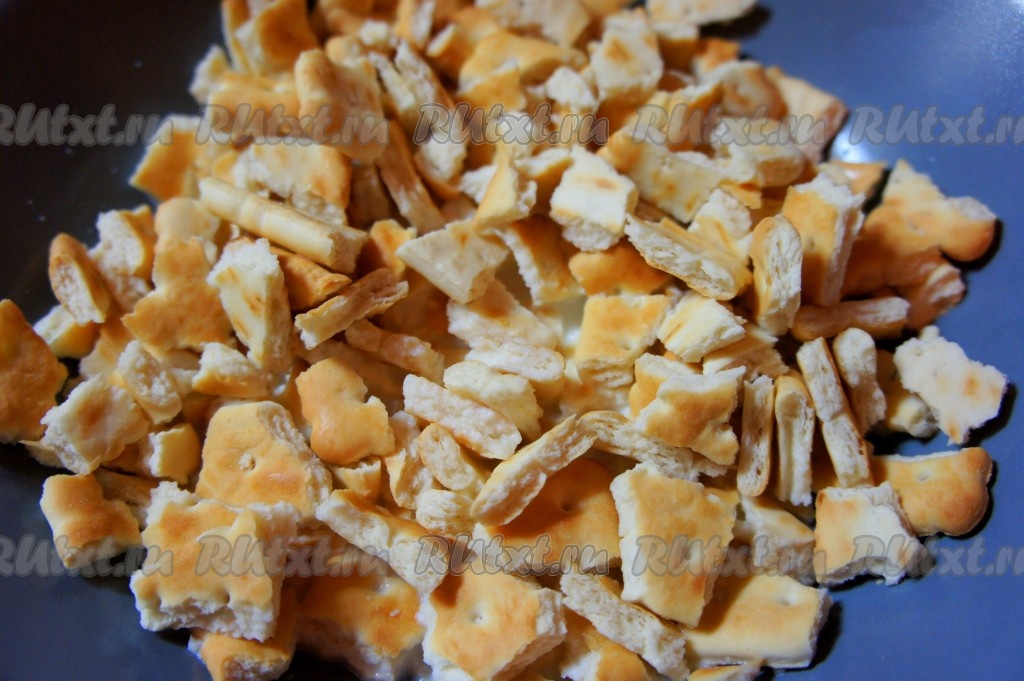 Печенье поломать. Если печенье крепкое, как у меня, то замочить в молоке на 10-15 минут, чтобы оно размягчилось, но оно не должно быть мокрым!