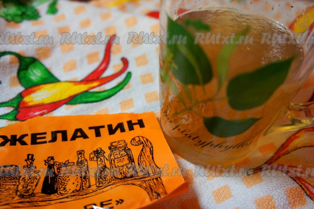 Желатин замочить на 20 минут в 150 граммах кипяченой холодной воды. Затем подогреть на водяной бане, постоянно помешивая.