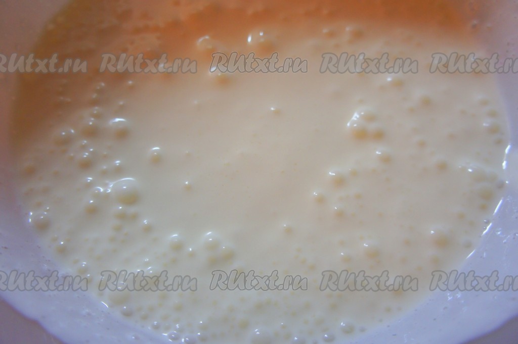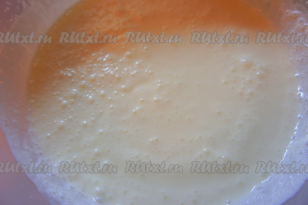 Для крема сметану взбить с сахаром, добавляя сахар небольшими порциями и не прекращая взбивать.