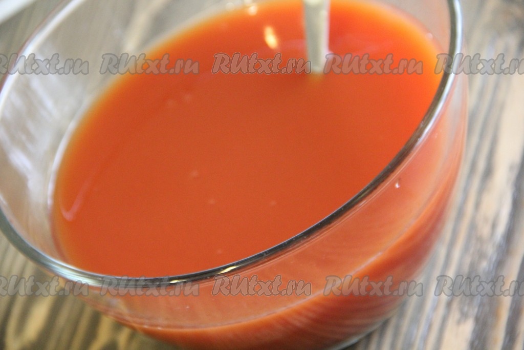 В глубокой миске соединить воду, томатную пасту, соль и перец. Всё хорошо перемешать.