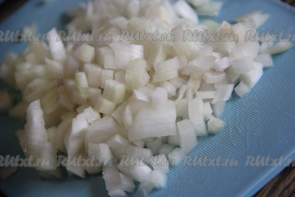 Лучше готовить гречку в глубокой сковороде, я использовала вок. Сковороду поставить на огонь и добавить растительное масло. Выложить в сковороду лук и обжарить, иногда помешивая, до золотистого цвета.