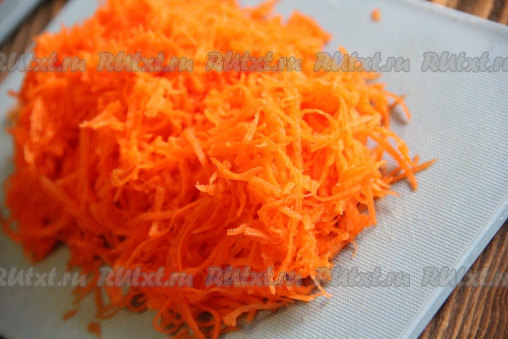 Затем добавить морковь и хорошо перемешать. Обжарить овощи в течение 5 минут, периодически помешивать.
