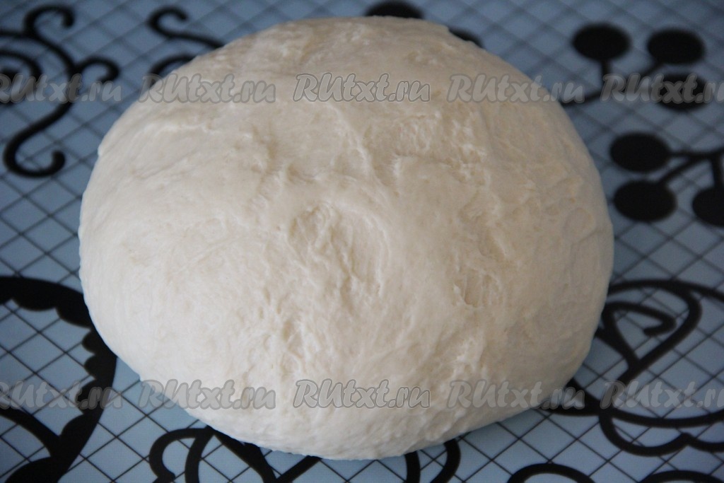 Оставшиеся 125 миллилитров молока подогреть до комнатной температуры (я подогрела в микроволновке, можно подогреть на плите). В объёмной миске соединить запенившуюся опару, 125 миллилитров молока комнатной температуры, растопленное масло и соль. Затем частями всыпать оставшуюся муку, каждый раз полностью вмешивая её в тесто. Тесто нужно хорошо вымесить, по консистенции оно должно быть ровным, однородным и мягким. Затем оставить его в миске, прикрыв полотенцем, на 1-1,5 часа. Тесто хорошо поднимется, увеличившись в объёме раза в 2-3. Тесто выложить на слегка присыпанную мукой поверхность и хорошо обмять. Накрыть тесто полотенцем и оставить на столе ещё на 30-40 минут.