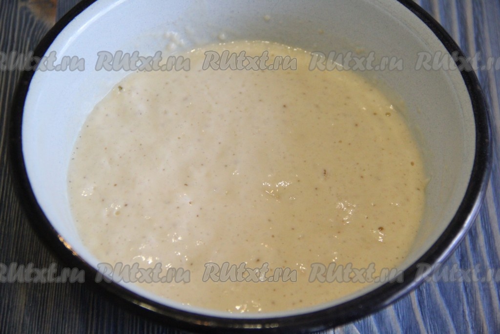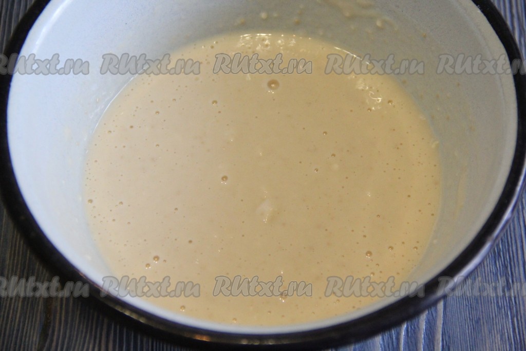 Опара увеличится в объёме и станет пузырчатой и воздушной. 50 грамм сливочного масла растопить, слегка остудить.