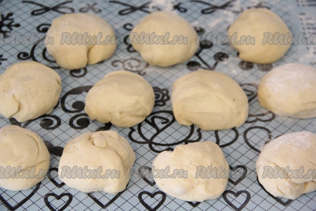 Разделить тесто на 10-12 частей.
