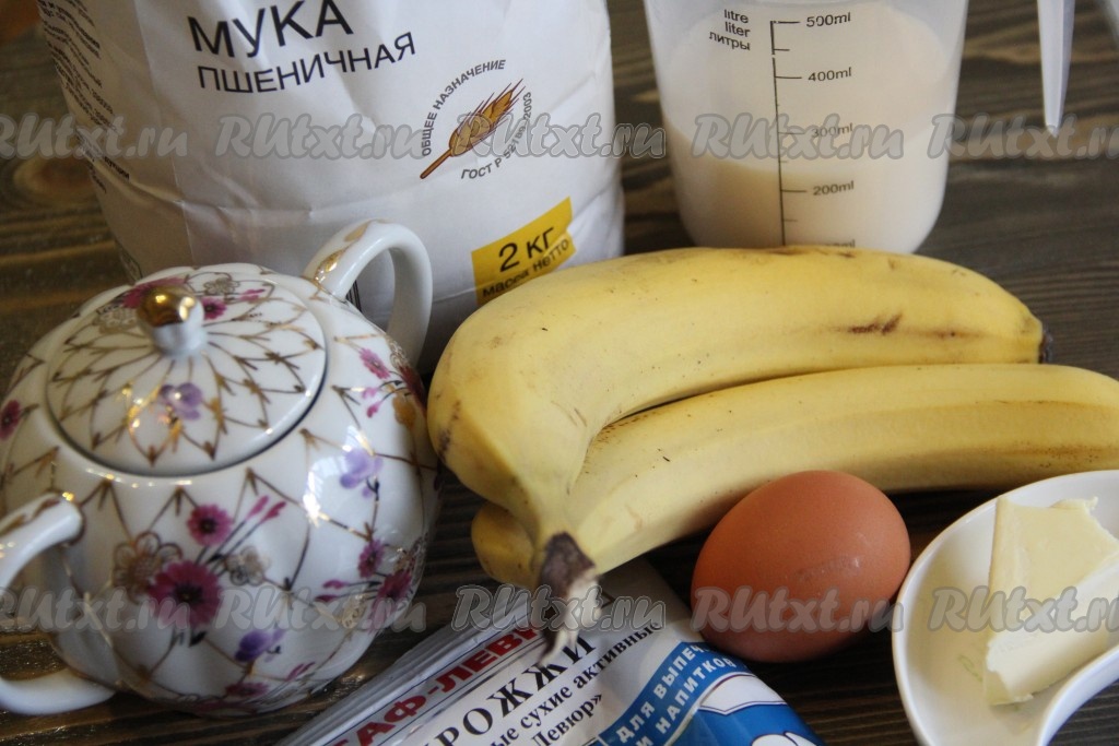 Приготовить продукты для приготовления дрожжевого теста с бананом.