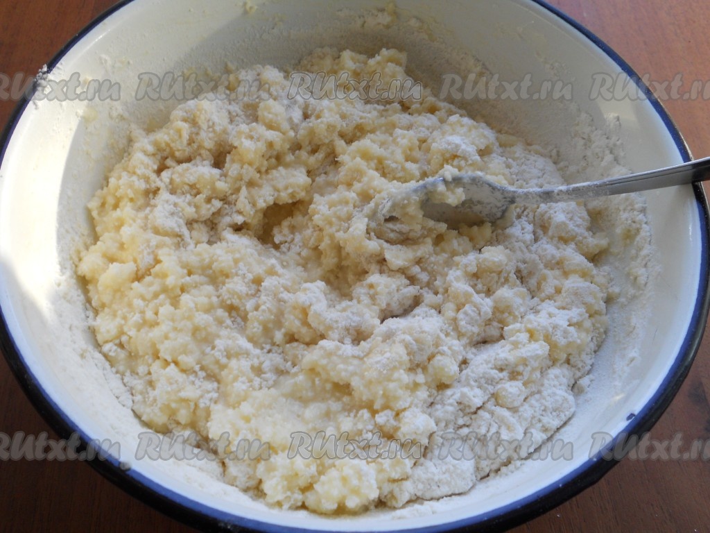 Слегка все взбить и добавить просеянную с разрыхлителем муку.