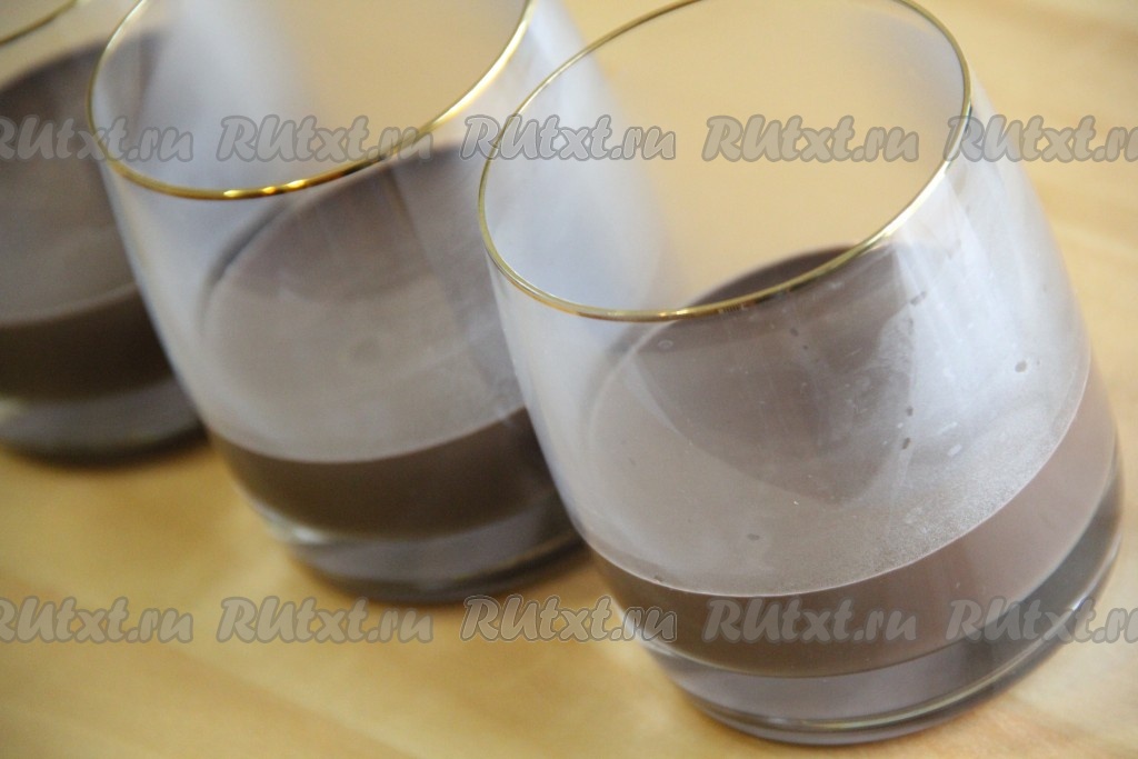 Разлить смесь по фужерам. У меня получилось три порции. Поставить стаканы с желе в холодильник до полного застывания. У меня стаканы находились в холодильнике 2 часа, а затем я начала готовить второй слой.