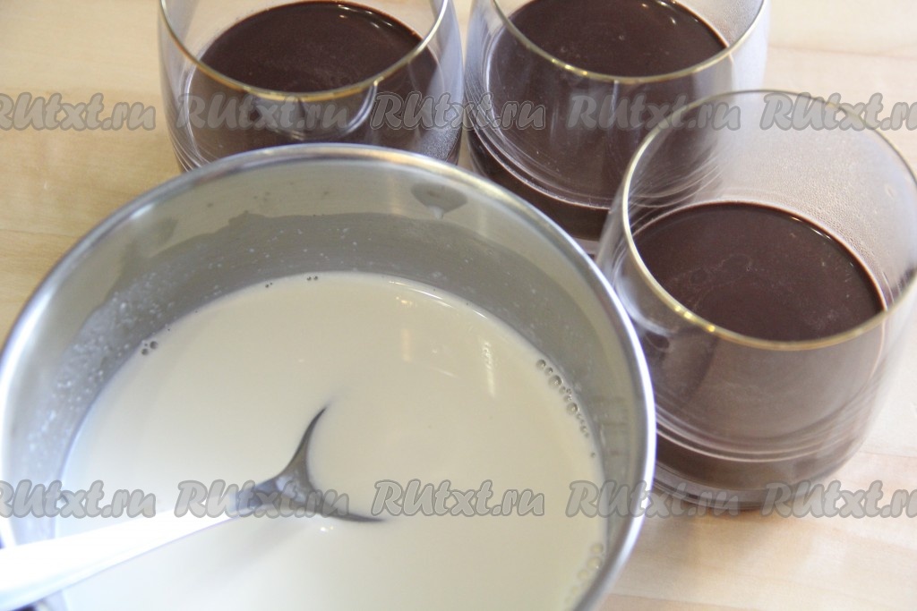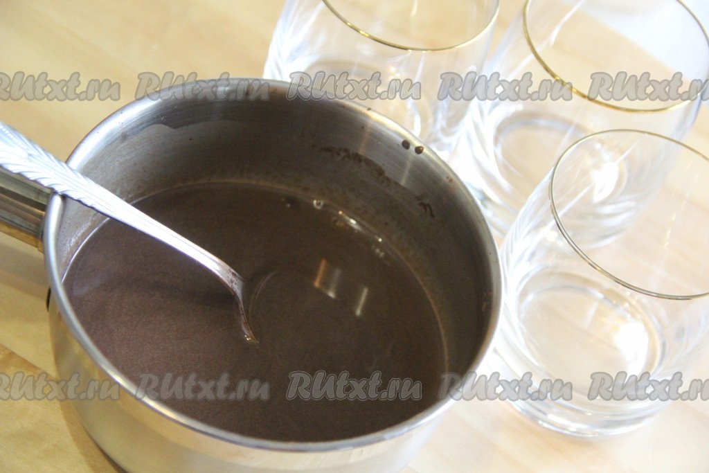 Смесь получится однородной, ровной и блестящей. Снять смесь с огня. Приготовить фужеры или креманки для десерта.