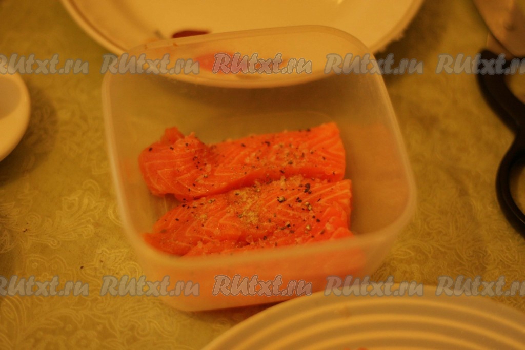 Закрыть крышкой и оставить в холодильнике на сутки. Очень просто и быстро мы засолили сёмгу в домашних условиях. Наслаждайтесь!