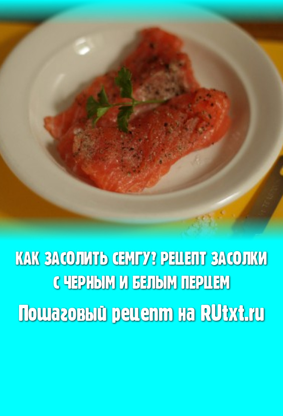Сёмга - нежнейшая рыбка, любимая многими. А если ещё и засолить её в домашних условиях, то получится истинный деликатес, который полностью будет удовлетворять всем Вашим вкусовым требованиям. Очень важно при засолке сёмги использовать именно свежемолотый черный перец. Он придает рыбе непередаваемый аромат и пикантность во вкусе. А белый перец оставляет приятное послевкусие. Сёмга получается в меру соленая и, конечно же, очень нежная.