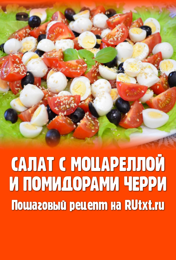 Перед подачей посыпать кунжутом, обжаренным на сухой сковороде. Вкусный, красивый и аппетитный салат с моцареллой и помидорами черри готов.