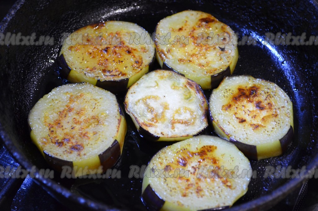 Баклажаны, нарезанные кружочками толщиной 1 см, хорошо посолить и оставить минут на 20-30, затем промыть и обсушить.