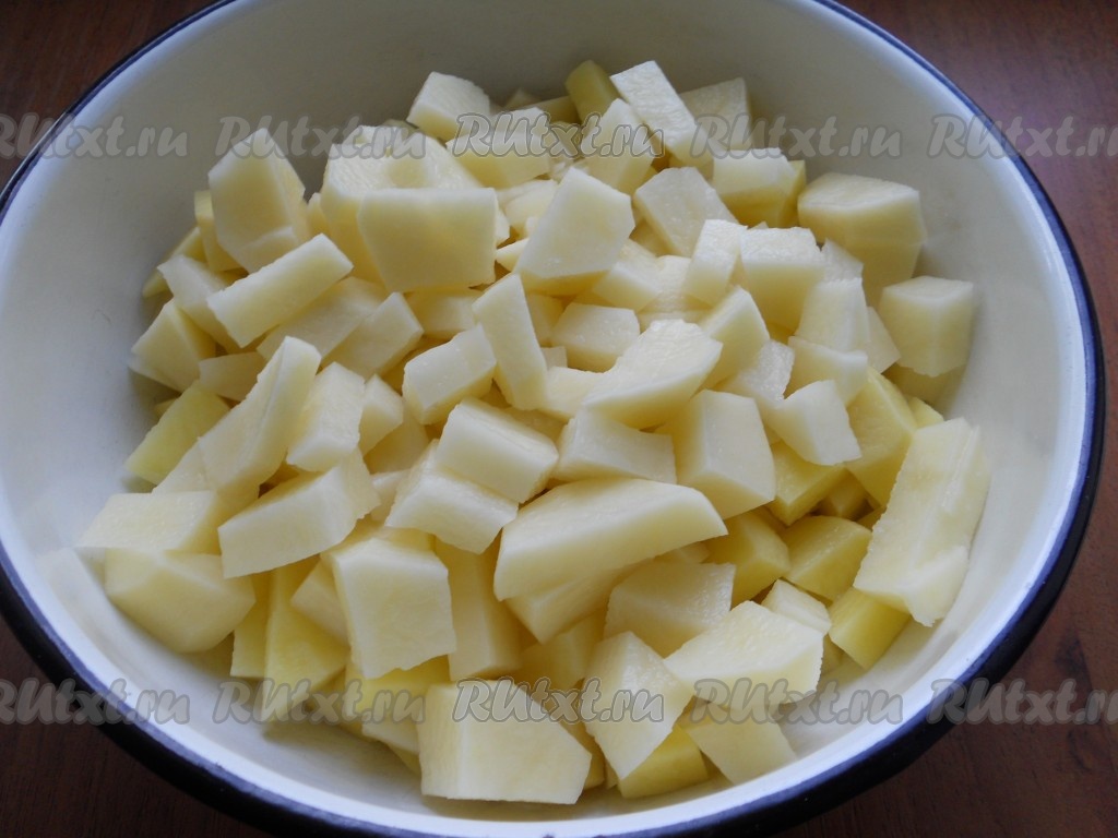 Картофель очистить и нарезать кубиками.