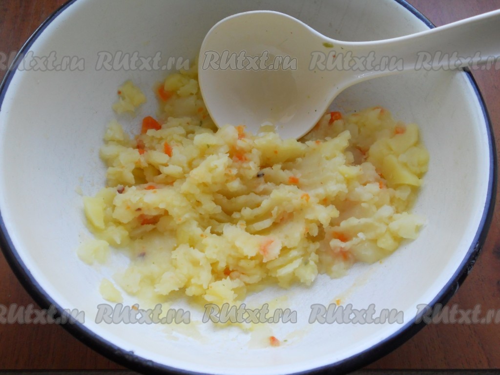 Добавить картофель к луку и моркови, перемешать.
