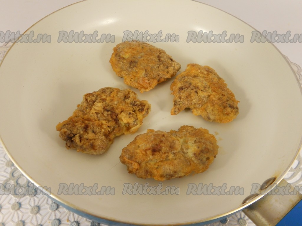 Готовые нежнейшие, необыкновенно вкусные отбивные из куриной печени подать в горячем или теплом виде.