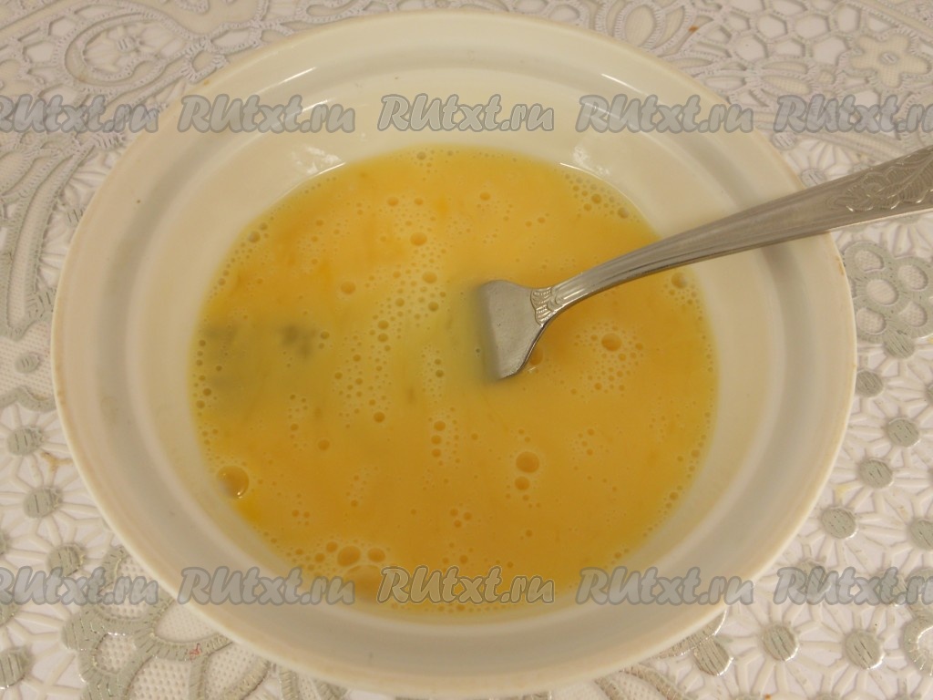 Яйца взбить вилкой или венчиком, добавив немного соли.
