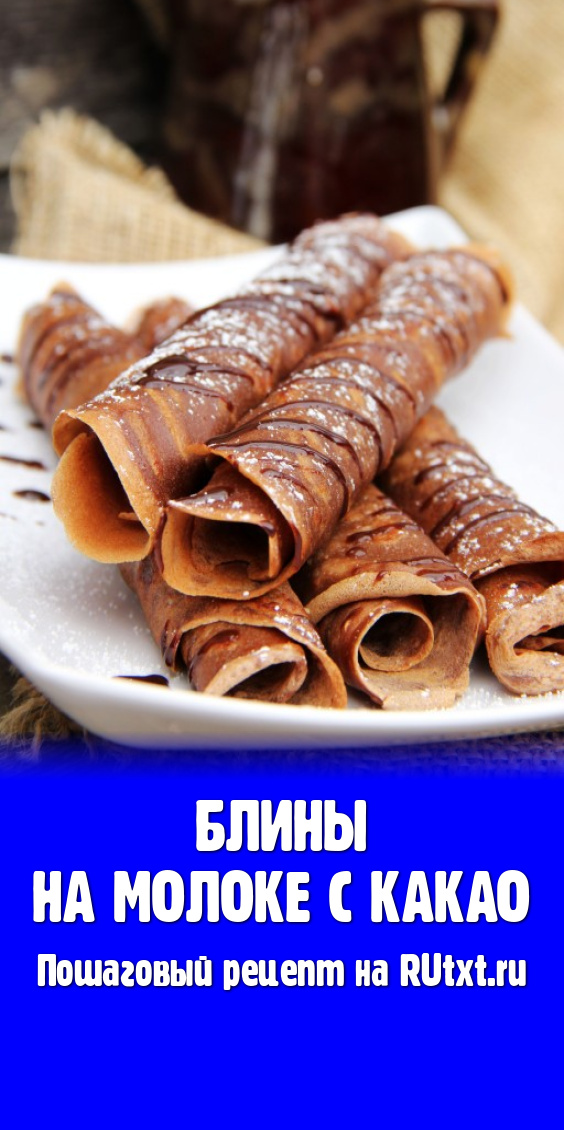 Блины, приготовленные из теста, замешанного на молоке с какао, хороши как в горячем, так и в холодном виде. Перед подачей тонкие, вкусные блинчики можно полить шоколадным сиропом или посыпать сахарной пудрой.