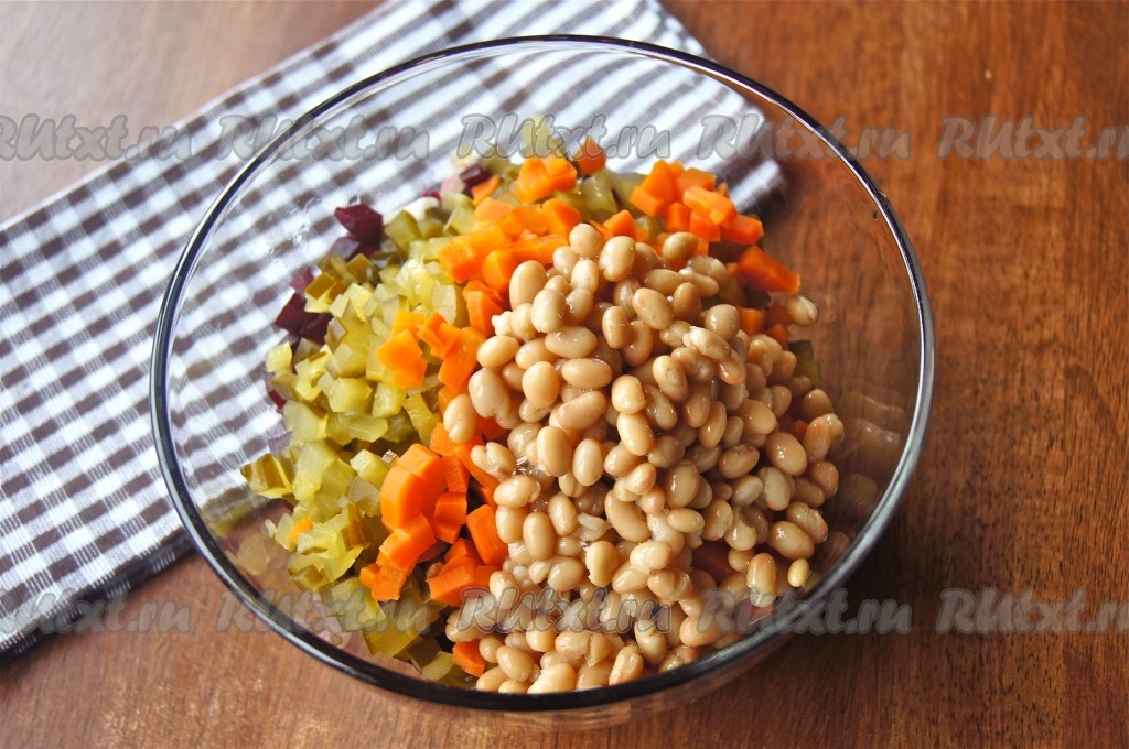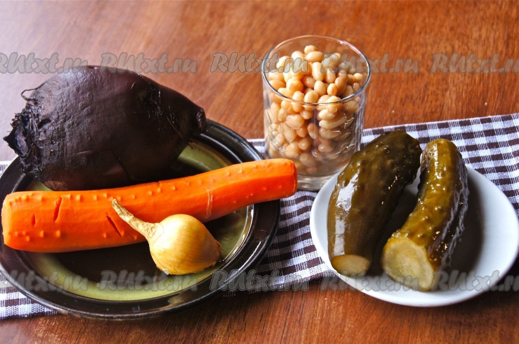 Для приготовления винегрета с фасолью нам потребуется: