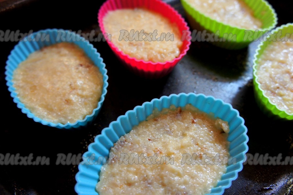 Грушевой смеси дать постоять 5-10 минут и уложить в маленькие силиконовые формы. Запекать в духовке при температуре 180 градусов в течение 20 минут.