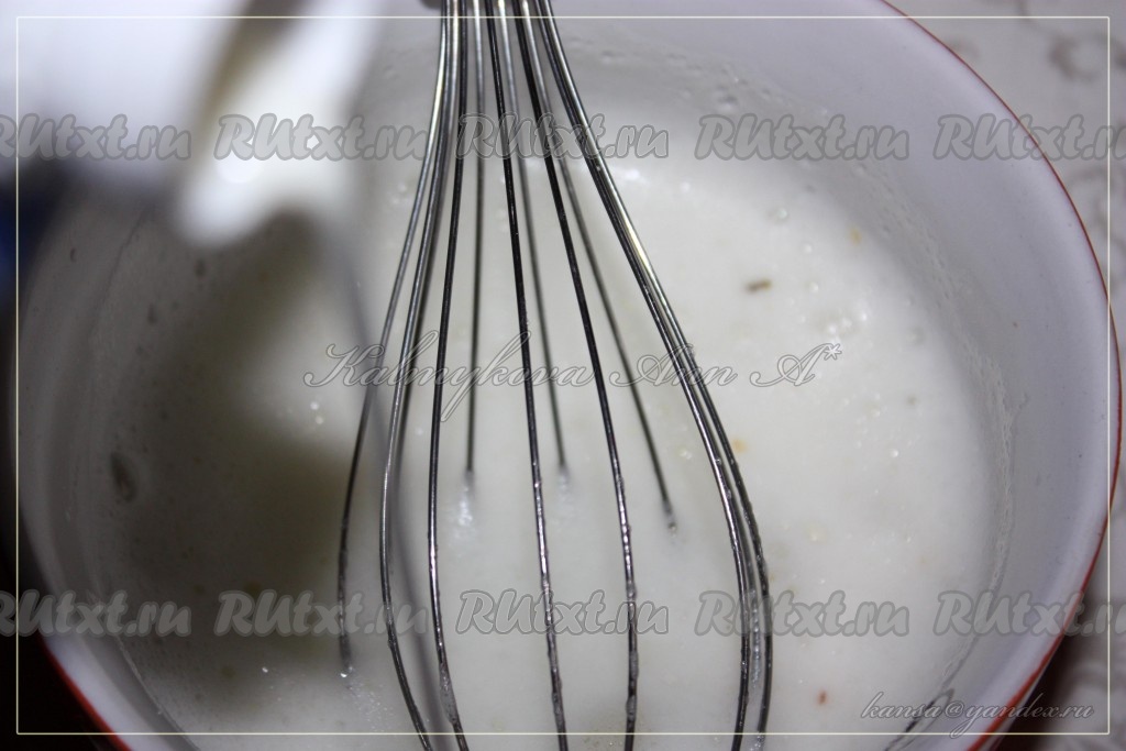 Белок яйца посолить и взбить венчиком до устойчивой пены.