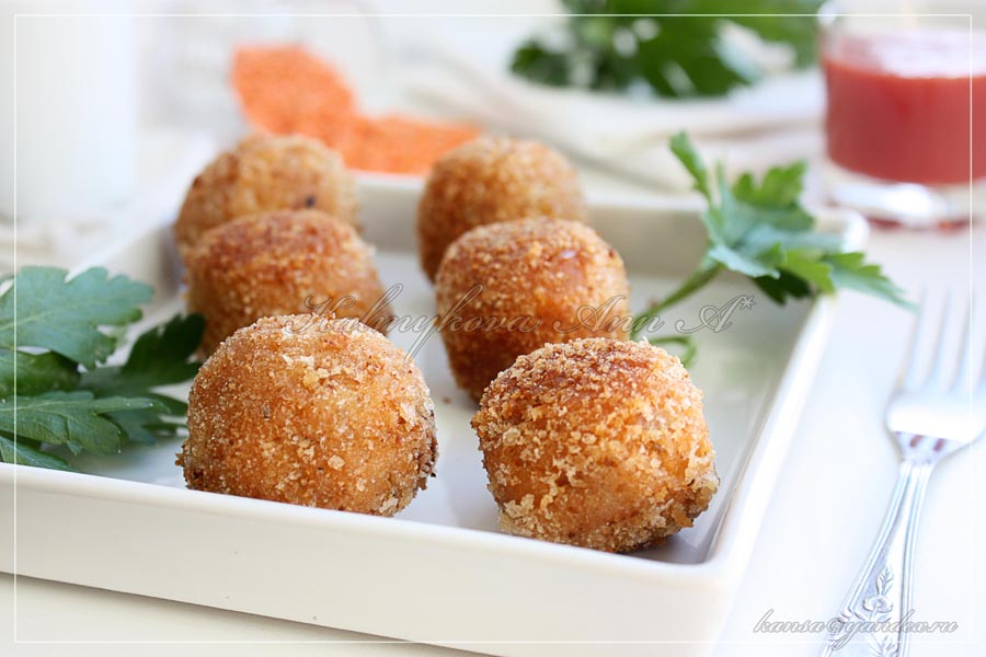 Шарики из красной чечевицы в панировке - прекрасная закуска, хрустящая снаружи и нежная внутри. Она идеально подходит как для праздничного стола, так и для повседневного питания.