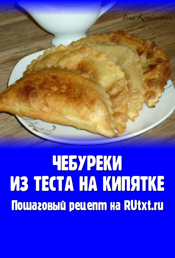 Хочу предложить рецепт чебуреков, которые готовятся на заварном тесте, замешанном на кипятке с добавлением яиц и растопленного сливочного масла. Чебуреки получаются необыкновенно вкусными. Они хрустящие, покрытые аппетитной корочкой снаружи, а внутри сочные и в меру мягкие. Нам очень нравятся такие чебуреки, поэтому и вам советую попробовать!