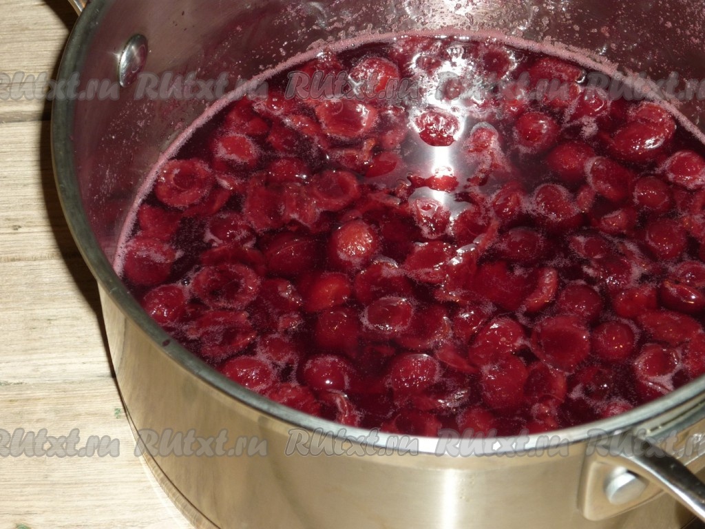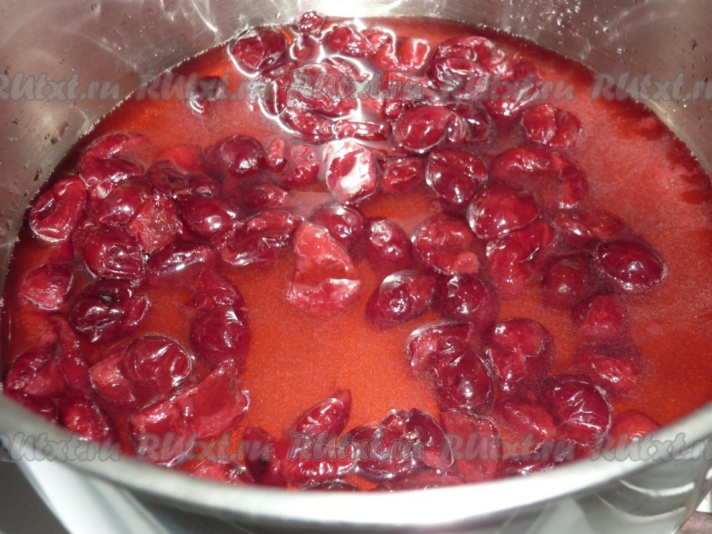 Довести соус до кипения, убавить огонь и проварить соус из вишни 3-5 минут.