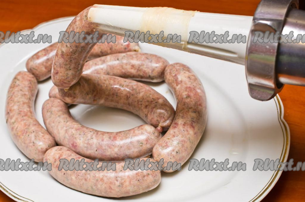 Кишки предварительно вымочить 20 минут в воде с уксусом (на 100 миллилитров воды понадобится 1 чайная ложка 9% уксуса). Кишки промыть под проточной водой. Я промываю, одев один конец кишки на гусак крана и включив холодную воду. Надеть кишку на специальную насадку мясорубки для подготовки колбасок и завязать оставшийся конец кишки. Начинить фаршем подготовленные свиные кишки через мясорубку. Наполнять кишки нужно не слишком плотно. Если нет у мясорубки такой насадки, тогда можно наполнить кишки фаршем с помощью обрезанной пластиковой бутылки.