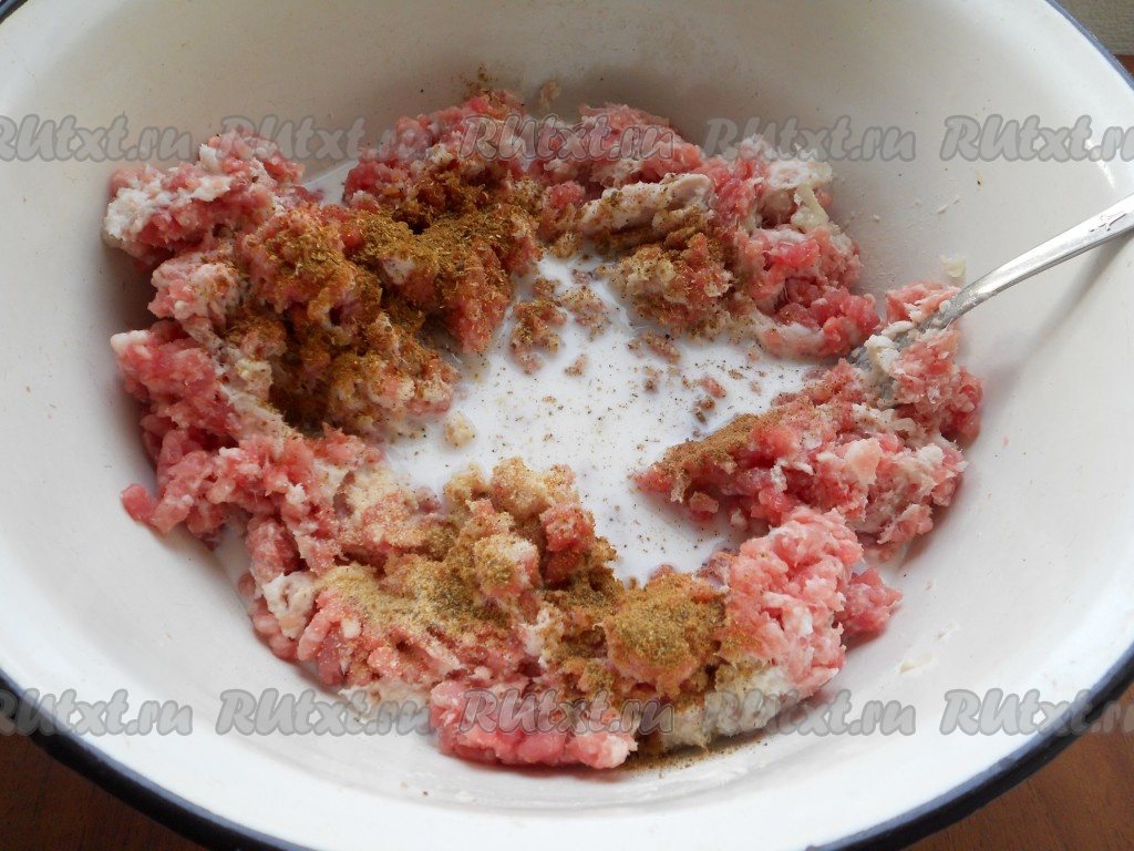 Добавить соль, специи и влить холодное молоко.