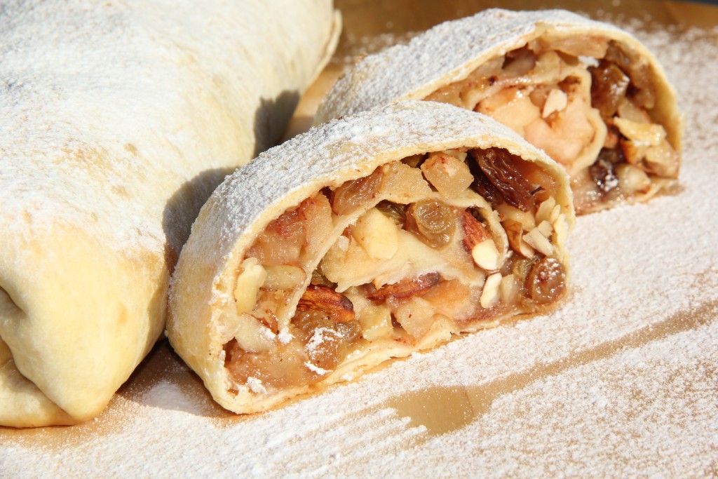 Вот такой аккуратный штрудель с яблоками и орехами получился у меня.