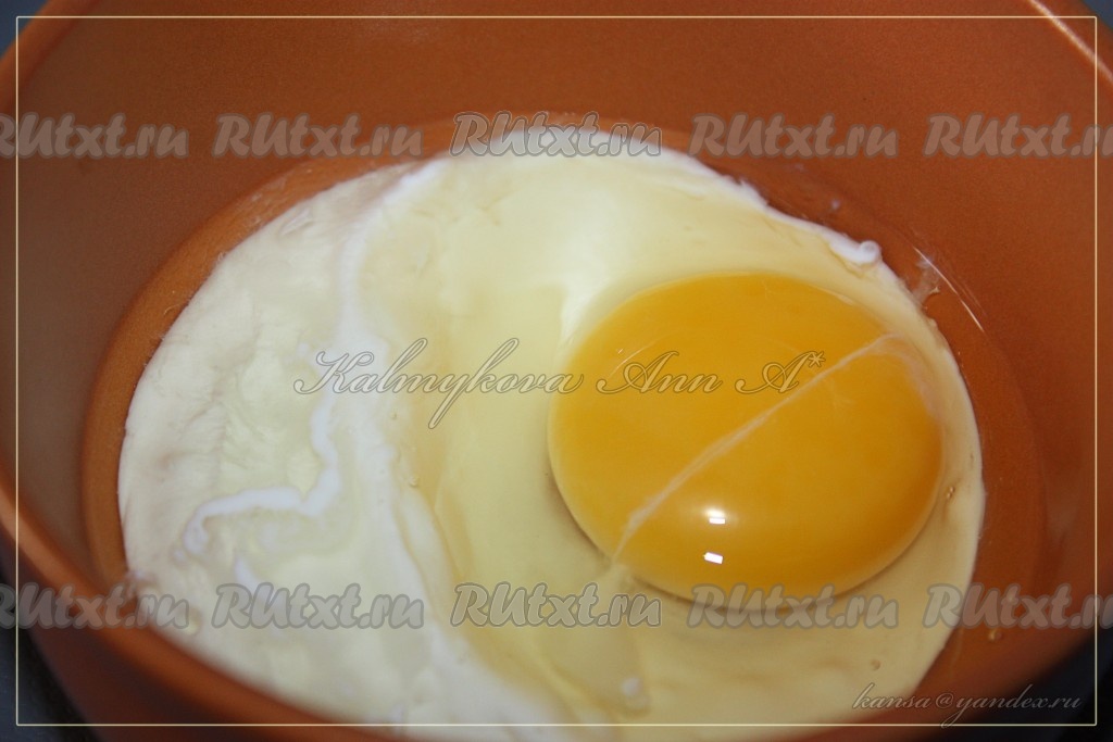 Яйцо и йогурт взбить вилкой.
