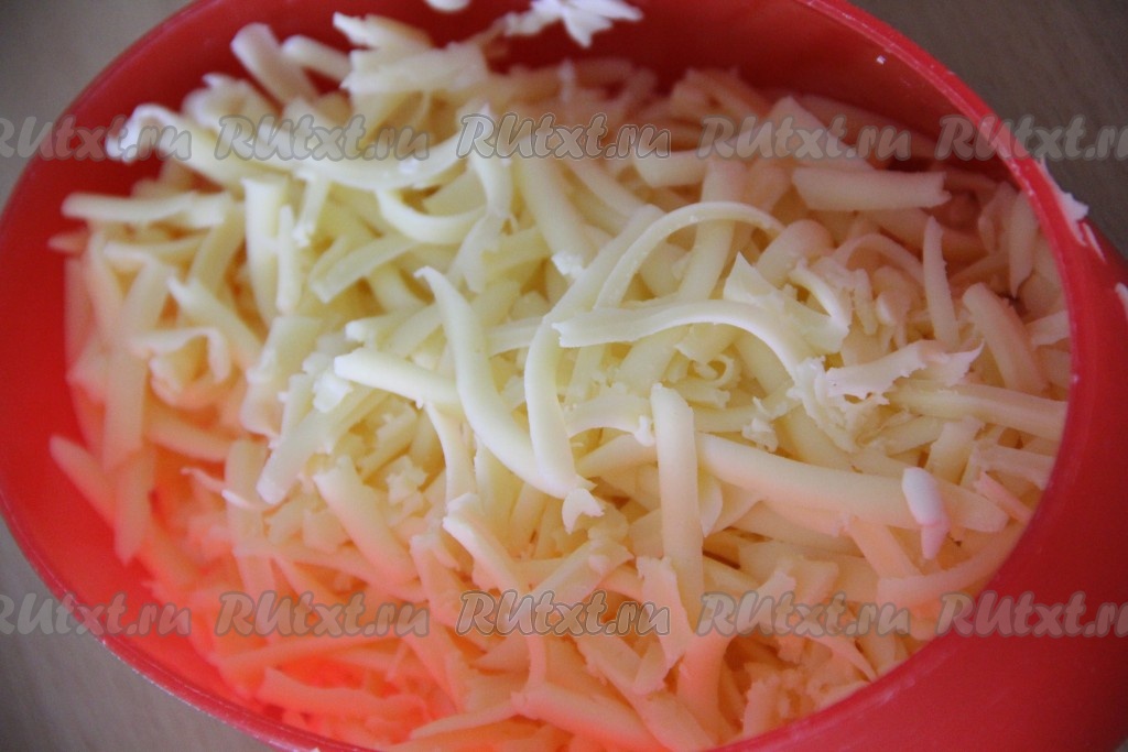 Сыр для приготовления этой закуски можно использовать любой, даже брынза подойдёт. Я взяла плавленный сырок весом 90 грамм и 60 грамм сыра твёрдых сортов. Сыр натереть на крупной тёрке.