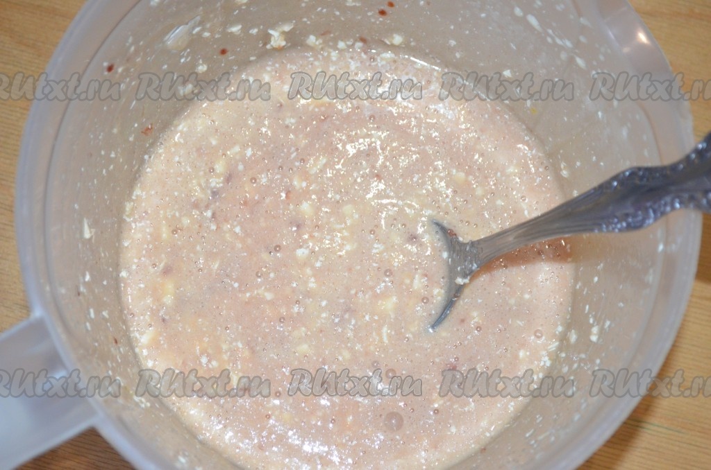 В полученную массу просеять муку с разрыхлителем, перемешать (или взбить). Тесто для кексов с малиновым вареньем должно плавно стекать с ложки.