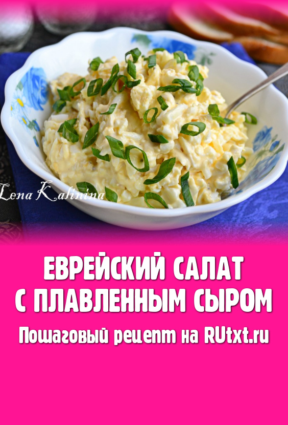 Выложить замечательный еврейский салат с плавленным сыром в салатник, посыпать измельченным зеленым луком. Очень просто и вкусно!